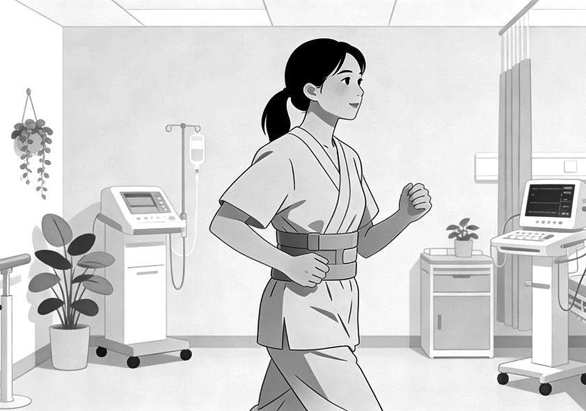 当身体状况允许,可在医护人员或家属陪同下,尝试床边站立。先坐在床边,双腿下垂,适应1-2分钟后,缓慢起身站立,每次站立时间控制在3-5分钟,每天进行3-4次。若站立无不适,可逐渐增加短距离行走,从病房内缓慢行走开始,每次行走距离控制在20-50米,每天行走3-5次,行走过程中注意保持平稳,避免摔倒。