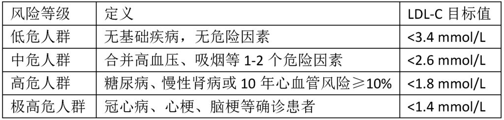 二、不同人群的LDL-C目标值